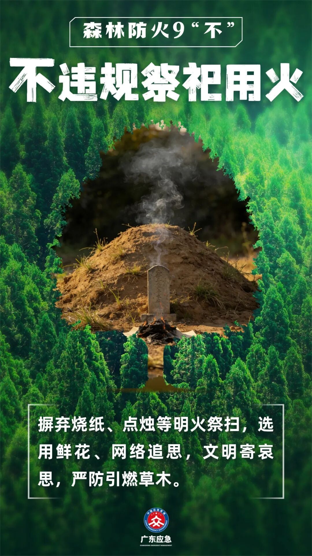 缅怀先人,贵在心意而非形式。我们倡议广大市民自觉践行文明祭祀、绿色祭祀理念,摒弃焚烧纸钱、烧香点烛等传统陋习,采用鲜花祭扫、网络追思、家庭追思、植树寄思等安全环保的方式寄托哀思,让思念不留烟火,让祭扫更有温度。同时,要严格遵守森林防火各项规定,不携带火种、易燃易爆物品进入林区,不进行任何形式的野外用火,管好家人、看好身边人,主动参与森林防火宣传,共同筑牢森林防火“安全墙”。
